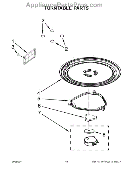 *** Note: This glass tray has 3 triangles to engage the coupler. In some cases, the factory used a tray that has 3 partial-circles. For that glass tray use part# 4393799. ***