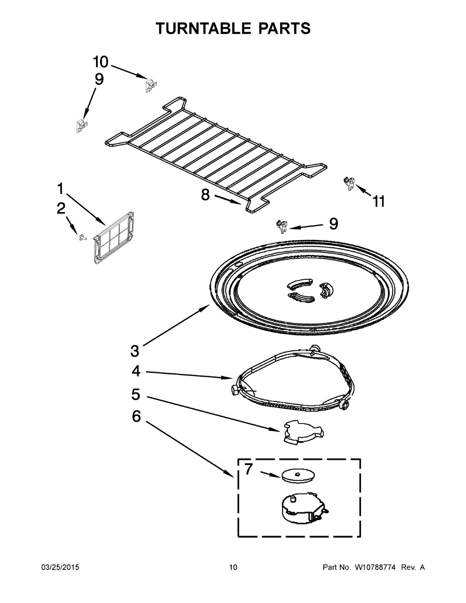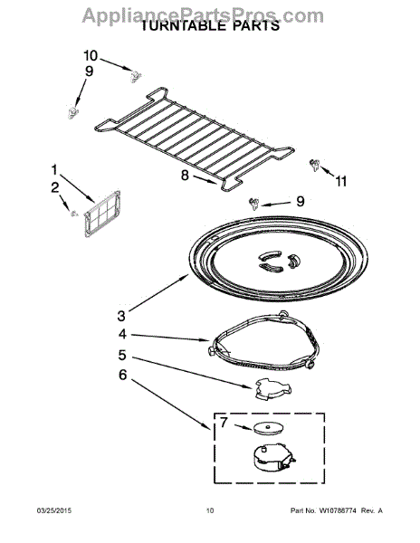 *** Note: This glass tray has 3 triangles to engage the coupler. In some cases, the factory used a tray that has 3 partial-circles. For that glass tray use part# 4393799. ***