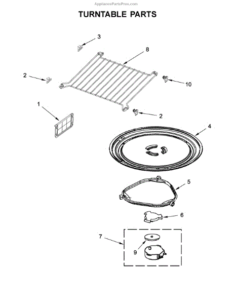 The Turntable Tray is an OEM part for Whirlpool microwaves. It sits on the turntable support and rotates to ensure even cooking and heating of food. The tray is designed to withstand high temperatures and is essential for the microwave’s efficient operation.