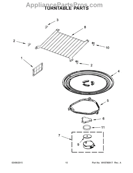 The Turntable Tray is an OEM part for Whirlpool microwaves. It sits on the turntable support and rotates to ensure even cooking and heating of food. The tray is designed to withstand high temperatures and is essential for the microwave’s efficient operation.