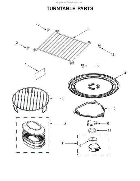 The Turntable Tray is an OEM part for Whirlpool microwaves. It sits on the turntable support and rotates to ensure even cooking and heating of food. The tray is designed to withstand high temperatures and is essential for the microwave’s efficient operation.