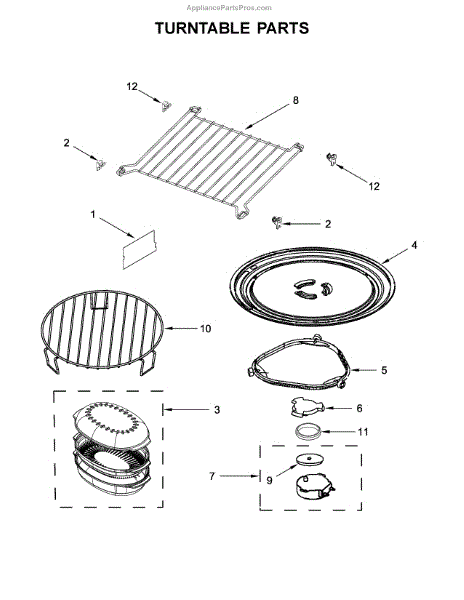 The Turntable Tray is an OEM part for Whirlpool microwaves. It sits on the turntable support and rotates to ensure even cooking and heating of food. The tray is designed to withstand high temperatures and is essential for the microwave’s efficient operation.