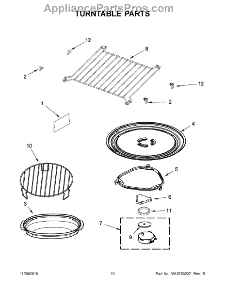 The Turntable Tray is an OEM part for Whirlpool microwaves. It sits on the turntable support and rotates to ensure even cooking and heating of food. The tray is designed to withstand high temperatures and is essential for the microwave’s efficient operation.