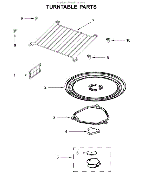 Plastic support ring that holds and rotates the glass turntable in your microwave. Replace if cracked, broken, or wheels are damaged or missing.