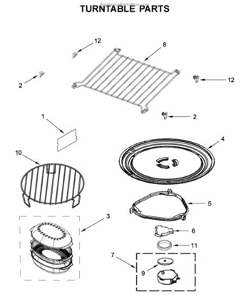 The Turntable Tray is an OEM part for Whirlpool microwaves. It sits on the turntable support and rotates to ensure even cooking and heating of food. The tray is designed to withstand high temperatures and is essential for the microwave’s efficient operation.