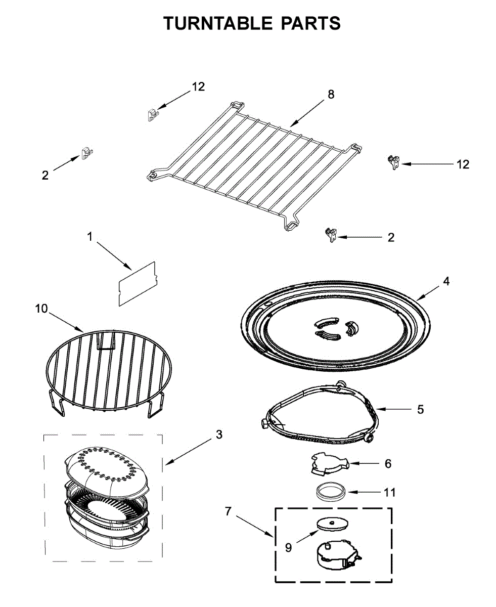 The Turntable Tray is an OEM part for Whirlpool microwaves. It sits on the turntable support and rotates to ensure even cooking and heating of food. The tray is designed to withstand high temperatures and is essential for the microwave’s efficient operation.