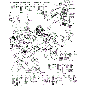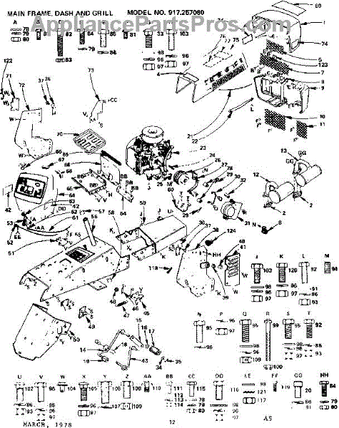 Parts for Craftsman 917257080: 19.9 Twin Garden Tractor / Main Frame, Dash And Grill Parts