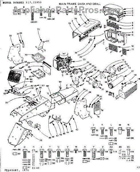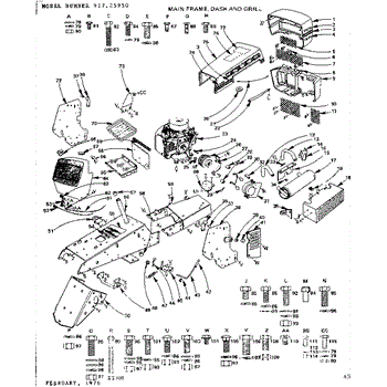 Parts for Craftsman 91725950: 16 Twin-Garden Tractor / Main Frame, Dash And Grill Parts
