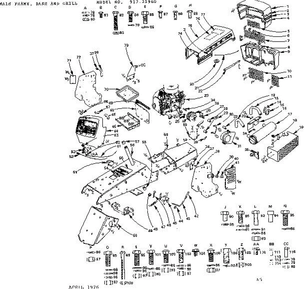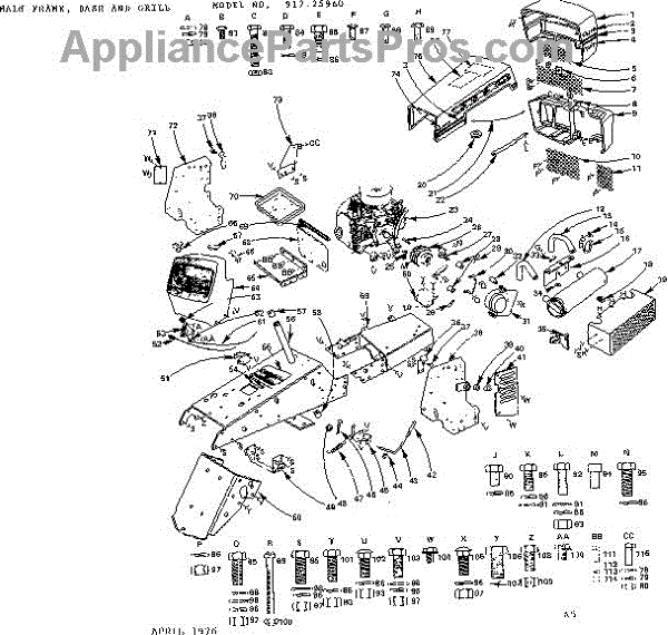 Parts for Craftsman 91725960: 18 Twin-Garden Tractor / Main Frame, Dash And Grill Parts