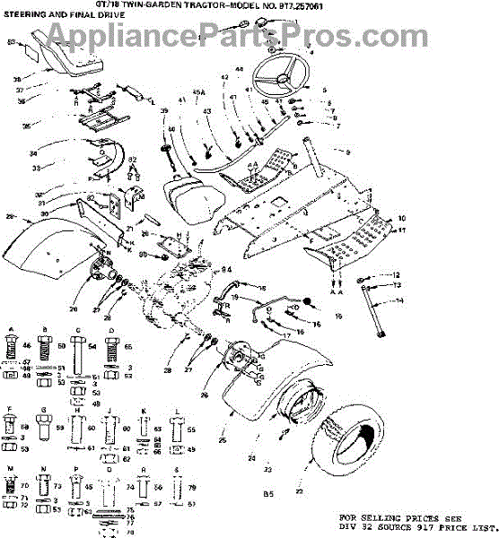 Parts for Craftsman 917257061: 18 Twin-Garden Tractor / Steering, And Final Drive Parts