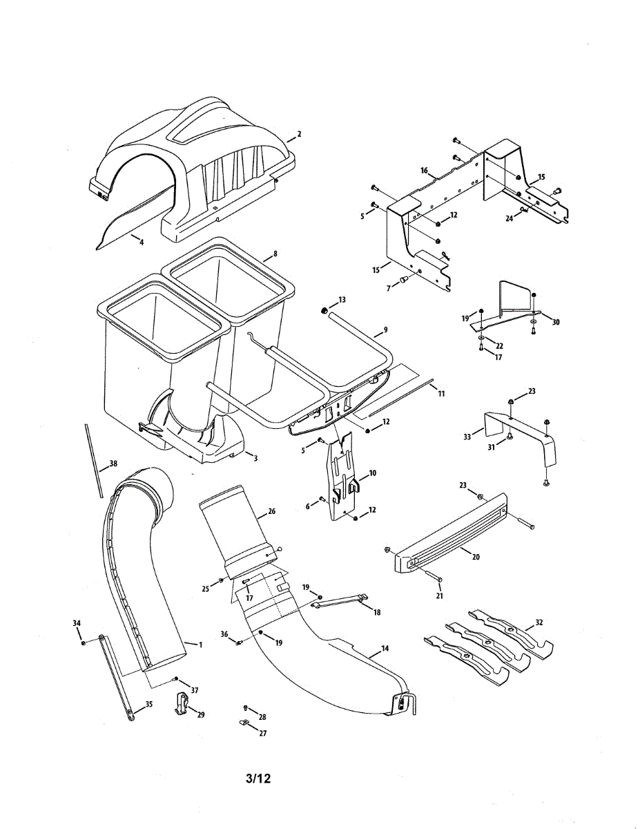 Grass clippings not reaching the bag? This upper chute assembly connects the lower chute to your bagging system. Replaces deteriorated plastic chutes.