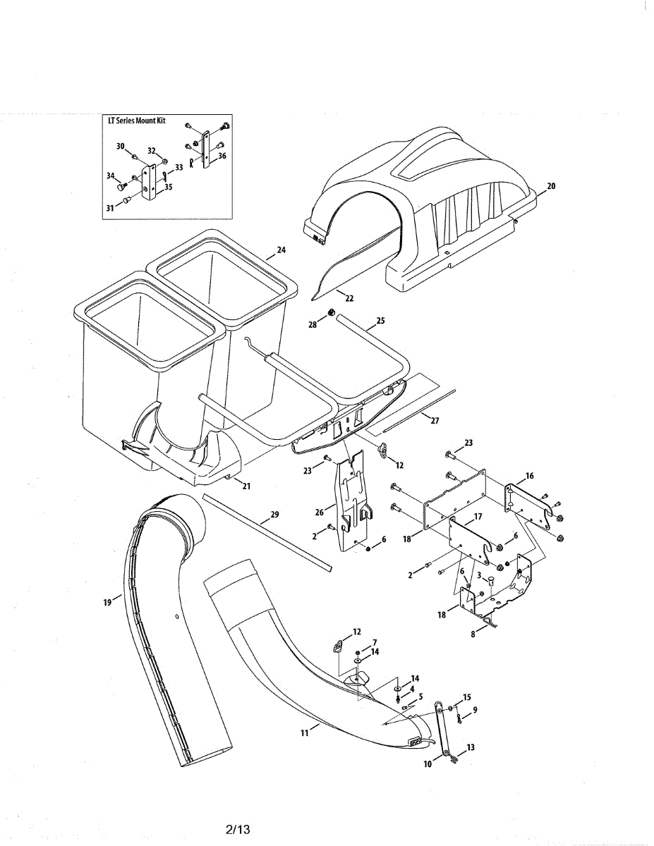 Grass clippings not reaching the bag? This upper chute assembly connects the lower chute to your bagging system. Replaces deteriorated plastic chutes.