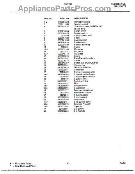 Parts for Frigidaire 93301C: Unit Parts