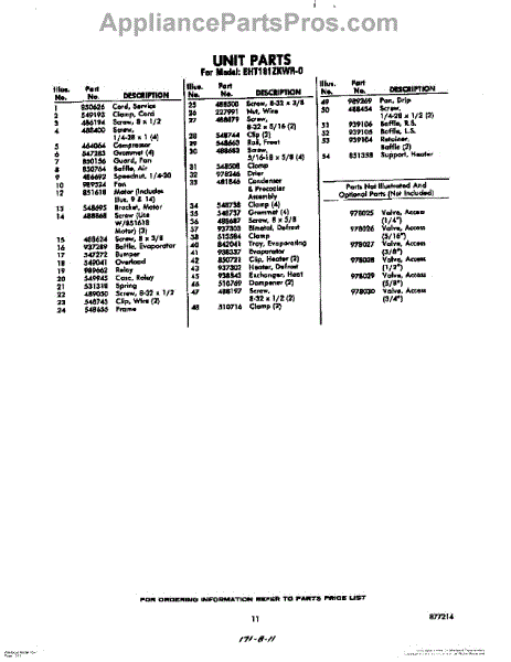 Parts for Whirlpool EHT181ZKWR0: 11 - Unit Parts