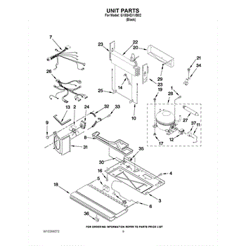 Rubber grommet that cushions and secures the refrigerator condenser assembly. Replace if cracked, worn, or missing to reduce vibration and noise.