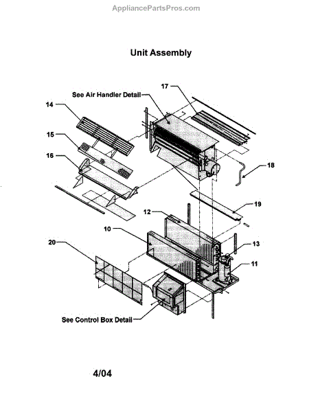 Parts for Friedrich THC12K34: Unit Assembly Parts