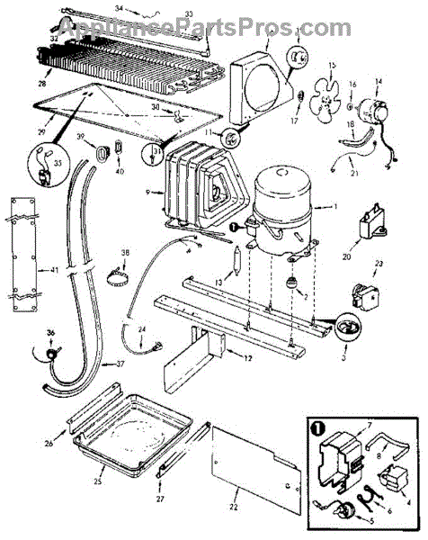 • Access the rear machine compartment; remove the relay cover on the compressor. Note wire positions, pull the old relay straight off the compressor pins, transfer wires, and fully seat the new relay in the same orientation