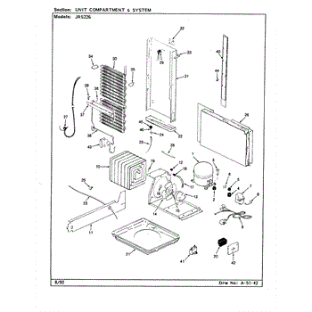Plastic defrost pan. Evaporator pan hangs from side rails and rests on compressor.