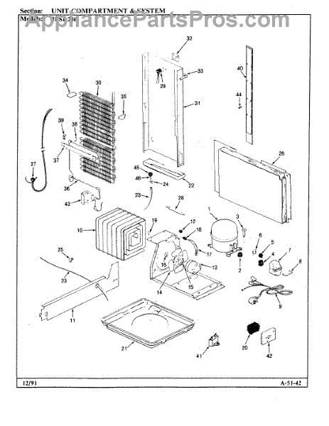 Plastic defrost pan. Evaporator pan hangs from side rails and rests on compressor.