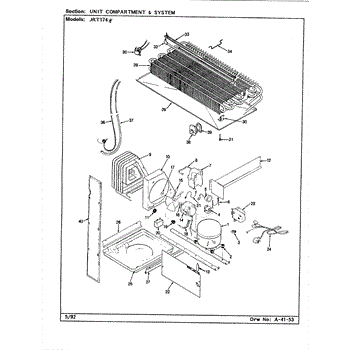 Plastic defrost pan. Evaporator pan hangs from side rails and rests on compressor.