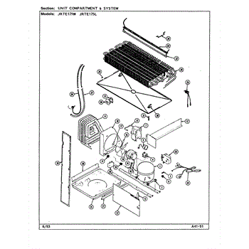 Plastic defrost pan. Evaporator pan hangs from side rails and rests on compressor.