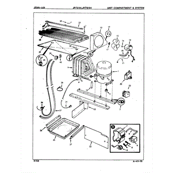 Plastic defrost pan. Evaporator pan hangs from side rails and rests on compressor.