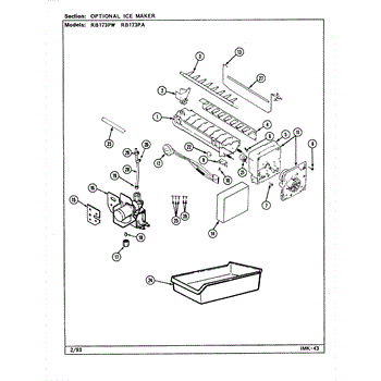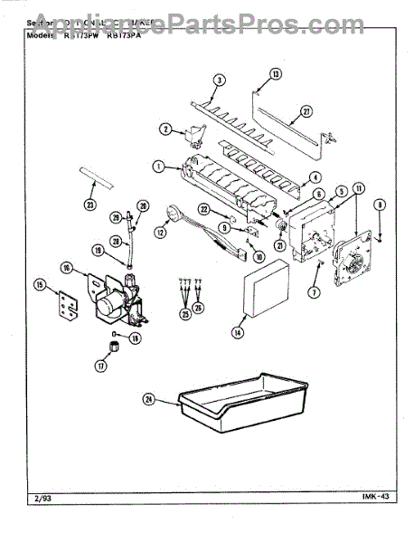 Plastic defrost pan. Evaporator pan hangs from side rails and rests on compressor.