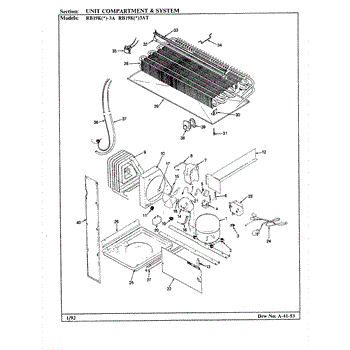 Plastic defrost pan. Evaporator pan hangs from side rails and rests on compressor.