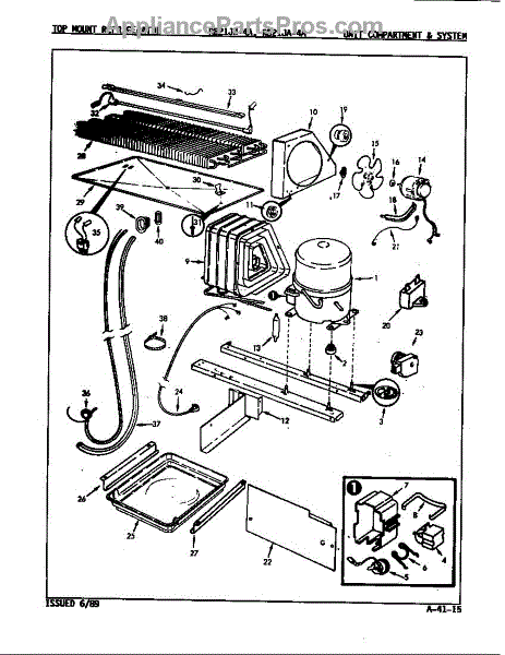 Plastic defrost pan. Evaporator pan hangs from side rails and rests on compressor.