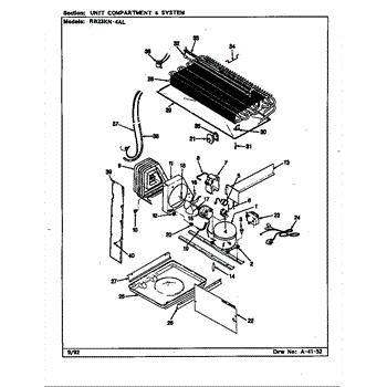 Plastic defrost pan. Evaporator pan hangs from side rails and rests on compressor.