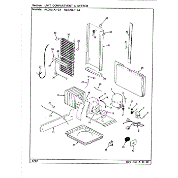 Plastic defrost pan. Evaporator pan hangs from side rails and rests on compressor.