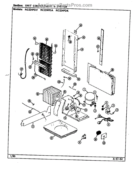 Plastic defrost pan. Evaporator pan hangs from side rails and rests on compressor.