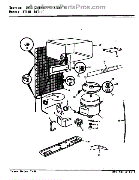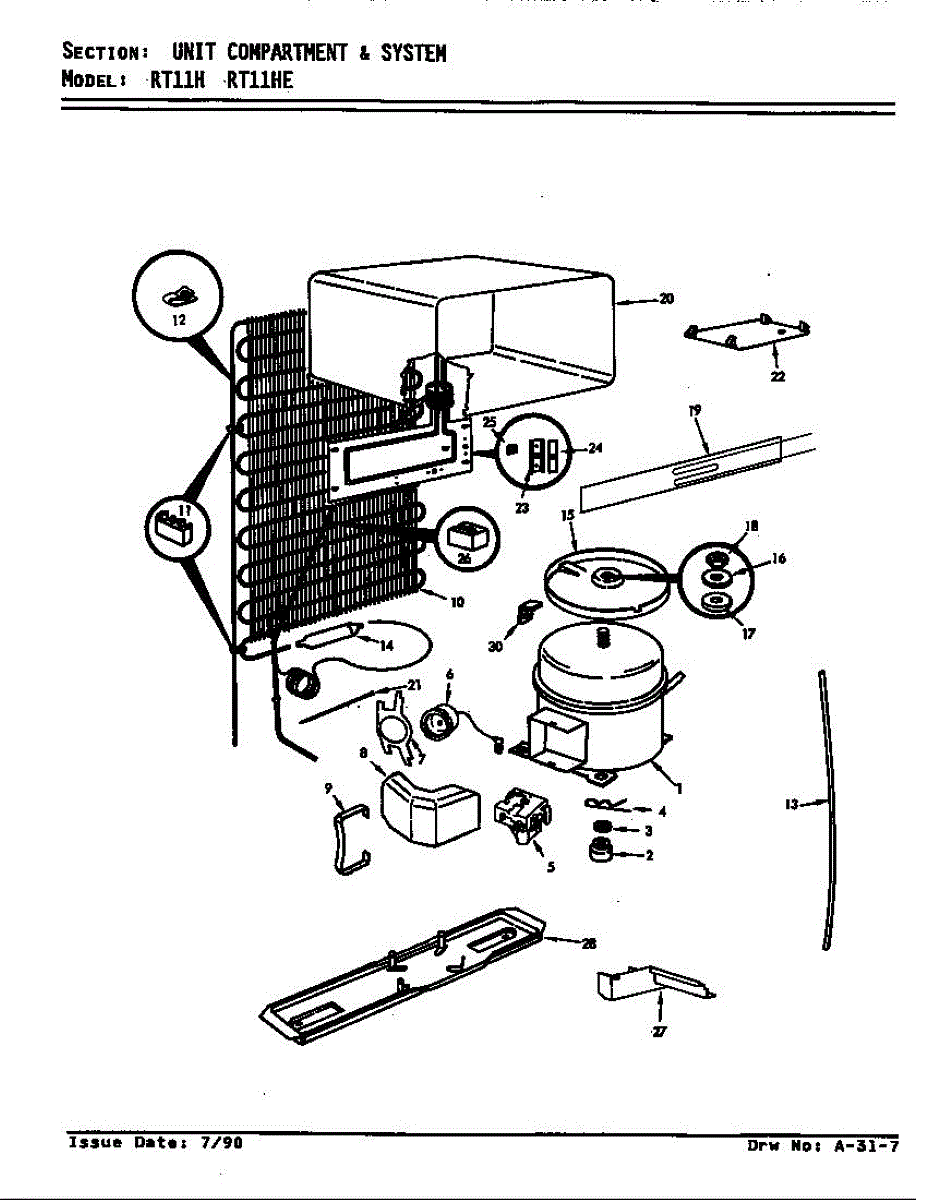 Parts for Magic Chef RT11HE/E9T00: Unit Compartment & System Parts