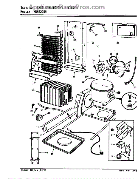 Plastic defrost pan. Evaporator pan hangs from side rails and rests on compressor.