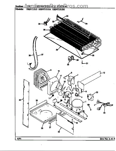 Plastic defrost pan. Evaporator pan hangs from side rails and rests on compressor.