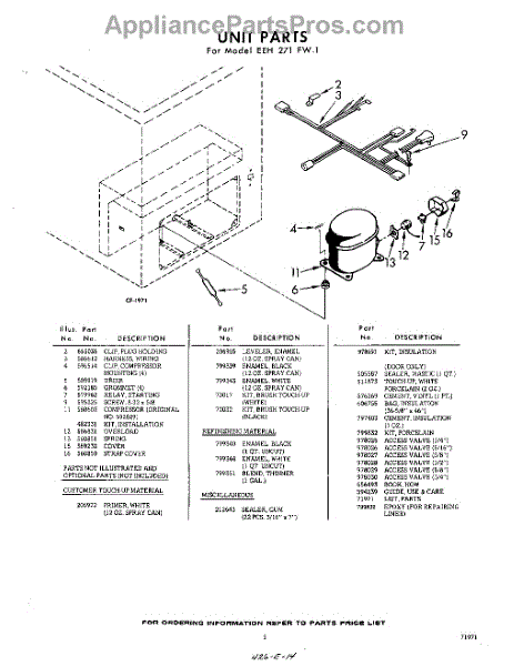 Parts for Whirlpool EEH271FW1: 05 - Unit , Lit / Optional Parts