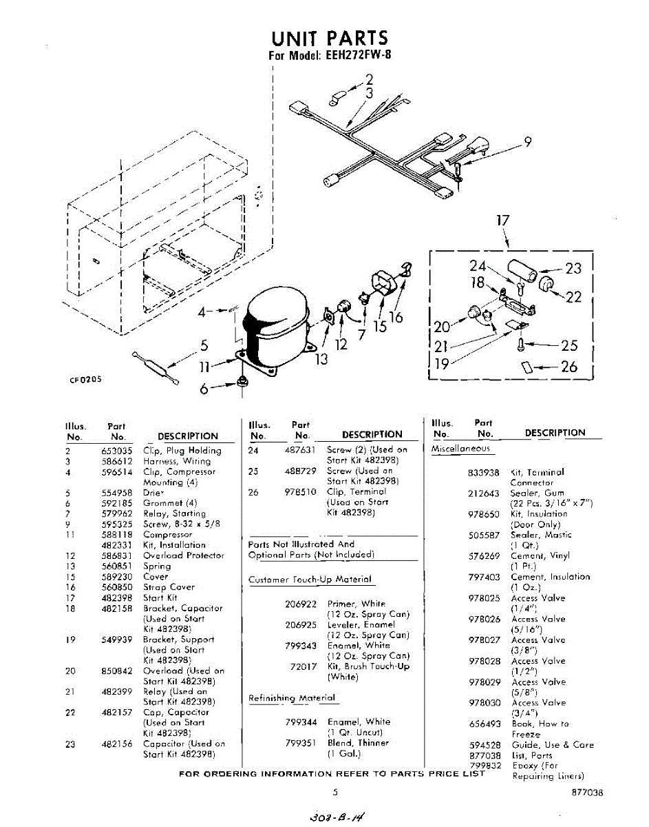 Parts for Whirlpool EEH272FW8: 05 - Unit , Lit / Optional Parts