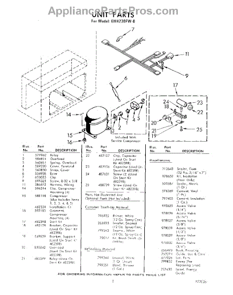 Parts for Whirlpool EHH230FW0: 05 - Unit, Lit / Optional Parts