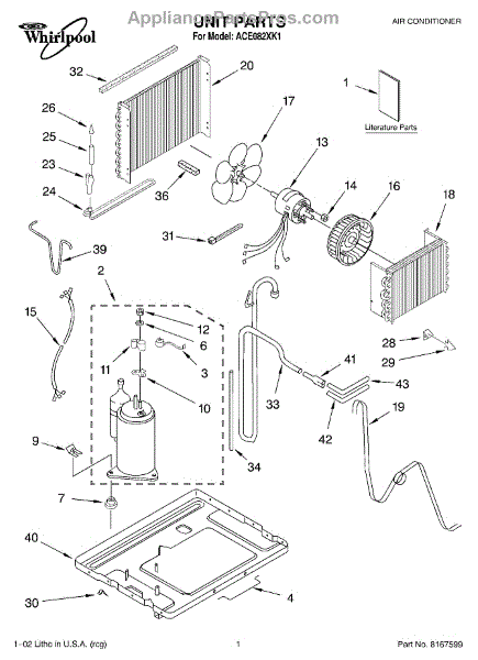 Parts for Whirlpool ACE082XK1: 01 - Unit, Literature Parts
