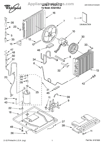 Parts for Whirlpool ACQ219XL0: 01 - Unit, Literature Parts