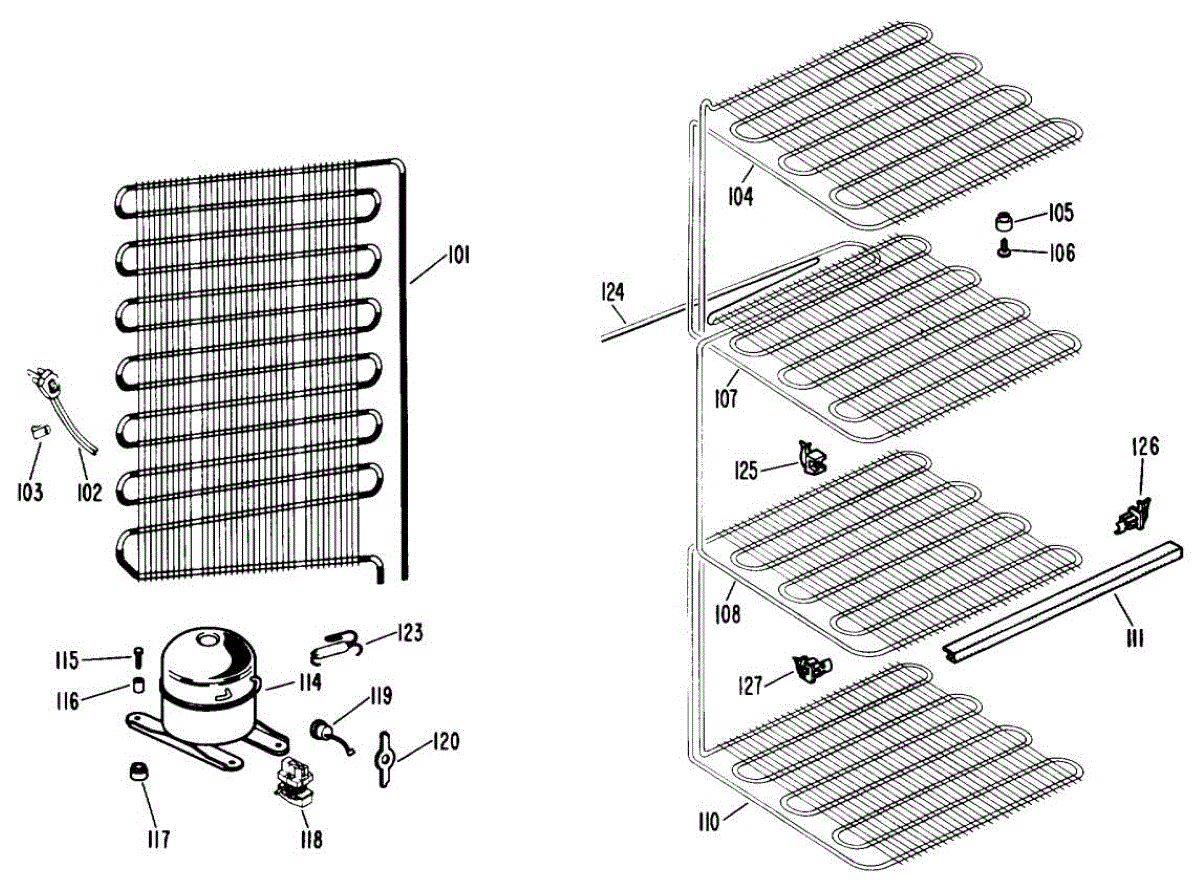 Supplies electrical power from wall outlet to refrigerator. Replace this cord if cut, frayed, overheated, or damaged to restore safe electrical connection.