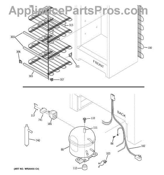 This capacitor helps the refrigerator's compressor start and run more reliably by supplying the motor with a brief boost of electrical energy. Installing a fresh capacitor can restore normal compressor starting and reduce hard-start symptoms. What it does