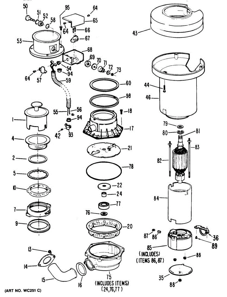 Replacement stopper assembly for batch-feed garbage disposals. Seals the sink opening to contain food scraps. Needed when original is cracked or broken.