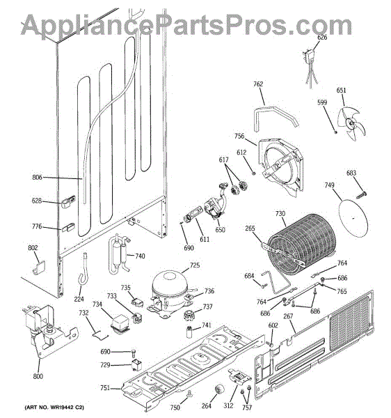 Note: This is a 115-volt AC fan motor. For the 12-volt DC fan motor, order part number WR60X10209. Right-hand thread. The compatible fan blade is part number WR60X10207.