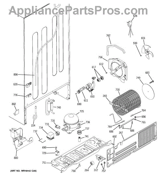 Note: This is a 115-volt AC fan motor. For the 12-volt DC fan motor, order part number WR60X10209. Right-hand thread. The compatible fan blade is part number WR60X10207.