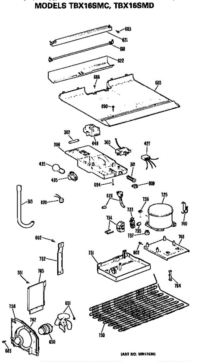 Parts for Ge TBX16SMDRWH: Unit Parts