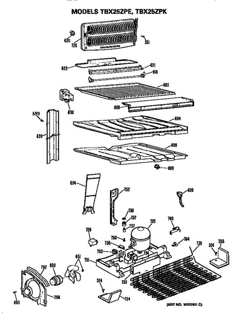Parts for Ge TBX25ZPERAD: Unit Parts