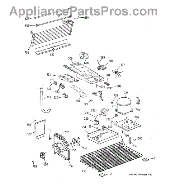 • Absorbs heat from the freezer compartment by circulating refrigerant through the coil