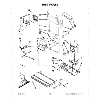 The Drip Pan is an OEM part for Whirlpool refrigerators. Located beneath the refrigerator, it collects and holds water that drips from the defrost system, preventing it from leaking onto the floor.