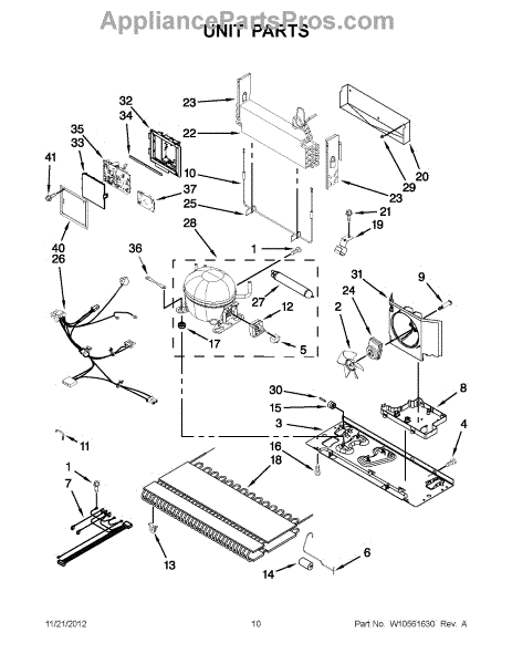 The Drip Pan is an OEM part for Whirlpool refrigerators. Located beneath the refrigerator, it collects and holds water that drips from the defrost system, preventing it from leaking onto the floor.